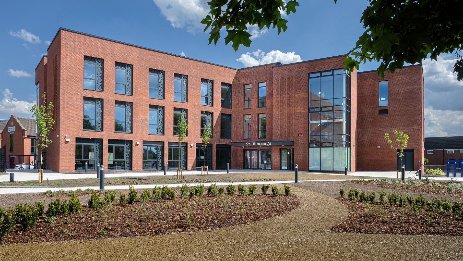 Caddick began work last spring, which has also included partial refurbishment of the existing college building to create new science labs. A science garden and landscaped reflection spaces have also been created to maximise the use of green space.