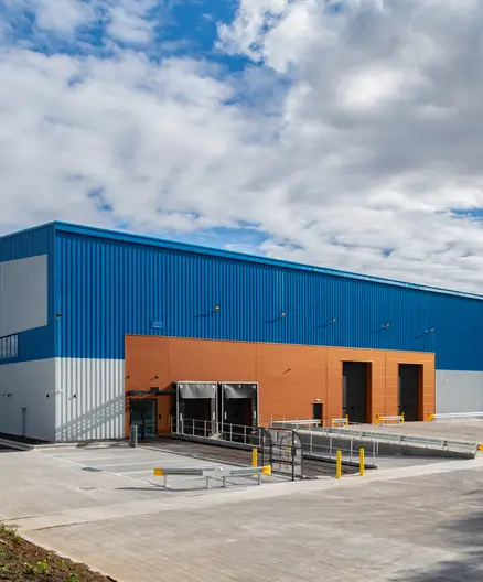 The external façades featured high-quality built-up metal cladding systems, curtain walling, and integrated vehicle and personnel doors. External works included hard standings, car parking, landscaping, main services, drainage, newly adopted access roads and a new substation, ensuring the development was fully operational on completion.